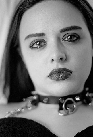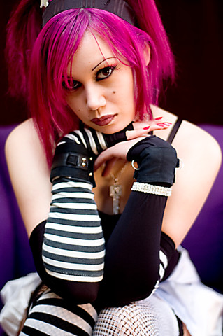 nice shot - having a good model who can communicate and give more to a shoot than being just a prop is very important, as evidenced here great use of negative space - gives real emphasis to all the lovely textures in her hair, clothing, and her striking facial features/expression