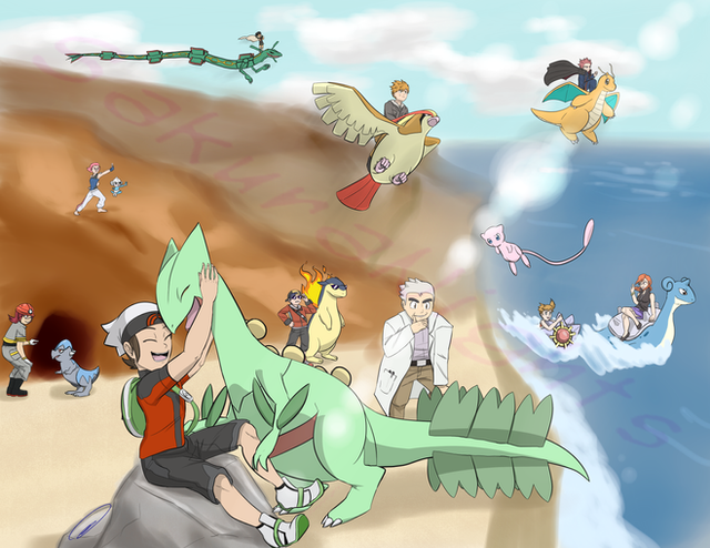 A piece that I started way back in February and finally got around to finishing the other night. This has always been my favourite scene from Emerald, which is my favourite of all pokemon games.