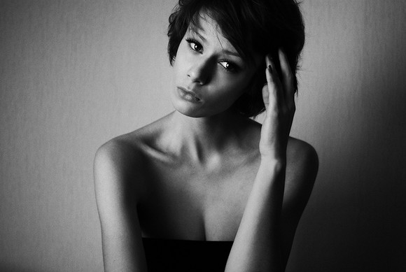 LOVE this image! Love the model (she's beautiful!). Love the B&W. Love the geometry! Really nice!