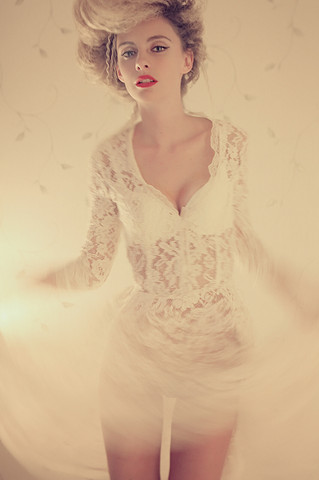 This should be a scene in a movie. Beautiful, but there's a mystery in her expression.