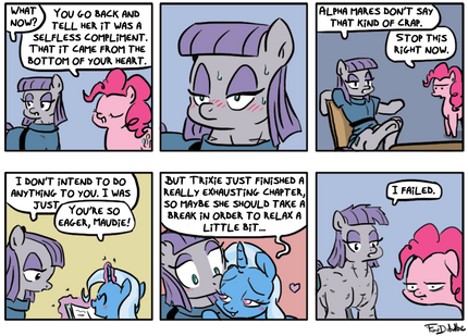 By the way, I think Maud has been watching too much cartoons to know all of Pinkie's tricks.