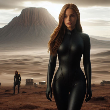 A Dall.E 3 image with Jess's face added using faceapp, edited together in layers.