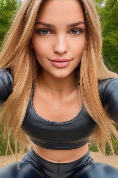 I had to remove extra straps and other asymmetries from her sports bra. I find one of the most impressive features of Stable Diffusion is its ability to draw a beautifully filled sports bra, but occasionally it gets too creative and adds straps and holes where there shouldn't be.