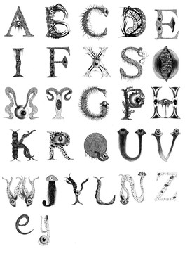 An illustrated alphabet an the 19th century style - each letter is composed of various body parts.Related content
