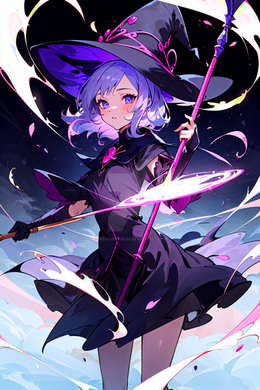 #beam #black #blasting #blue #chaos #dragons #effects #energy #eyes #garden #hair #hat #hires #illustration #masterpiece #quality #staff #wielding #witch #yellow #1girl #best