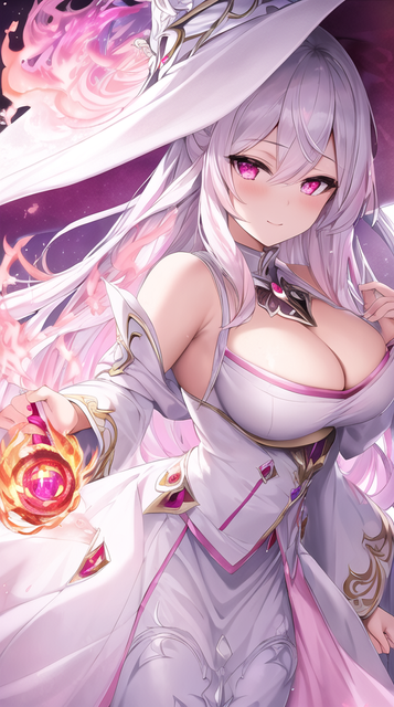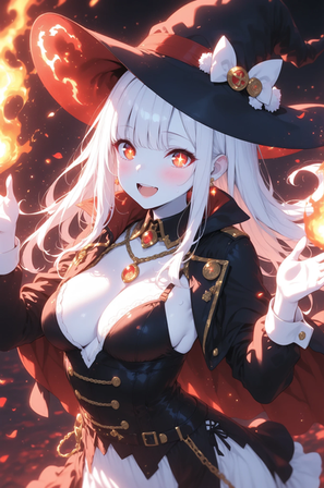 #beautiful #black #eyes #girl #hair #hat #illustration #magical #masterpiece #particles #quality #red #white #witch #best #fire