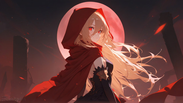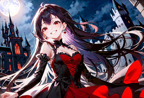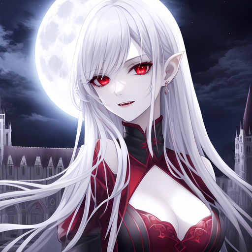 #angry #beautiful #dress #eyes #girl #hair #intricate #long #moon #mouth #night #open #red #smile #white #detail