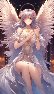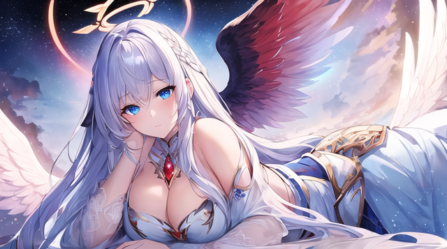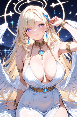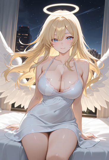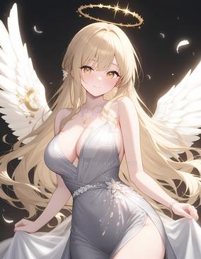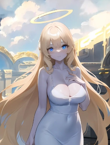 #anime #animegirl #angel #digitalart #fanart #characterdesign #animedrawing #digitalpainting #sexy #sexygirl #waifu #ai #bigbreasts #blondehair #blueeyes #halo #kawaii #wings