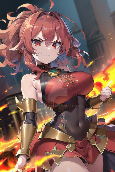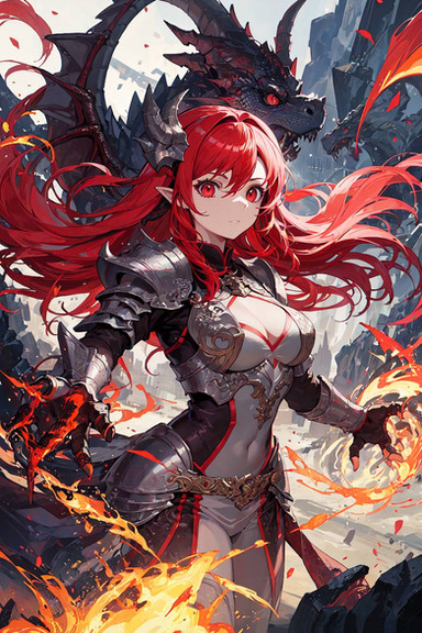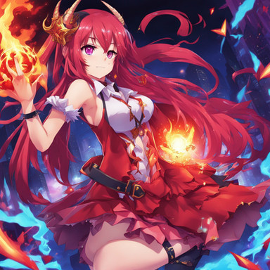#ai #angry #attack #beautiful #chaos #dragons #effects #eyes #fireball #girl #hair #illustration #karma #long #masterpiece #mouth #open #princess #quality #red #smile #white #best #fire