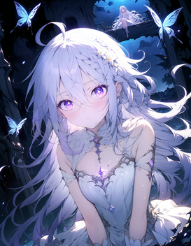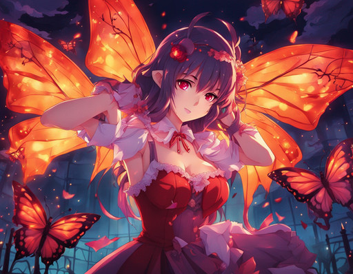 #ai #beautiful #butterfly #dress #effects #eyes #girl #hair #illustration #long #masterpiece #quality #red #smoke #white #wings #best #fire