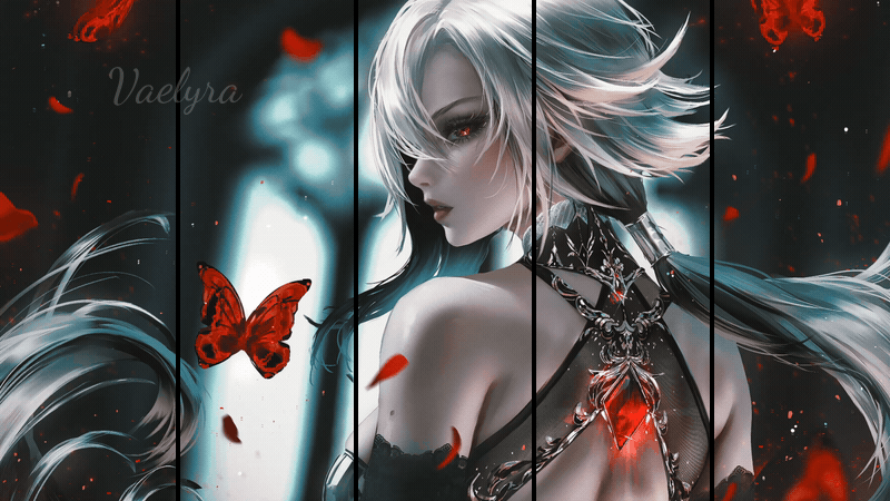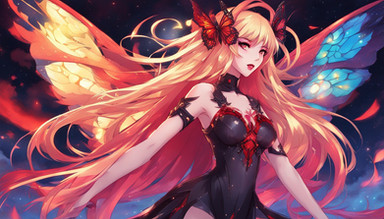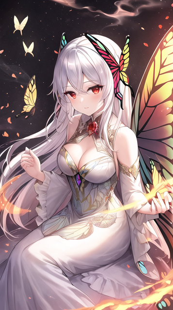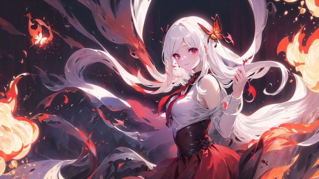 #ai #beautiful #butterfly #dress #effects #eyes #girl #hair #illustration #long #masterpiece #quality #red #white #wings #best #fire
