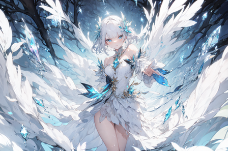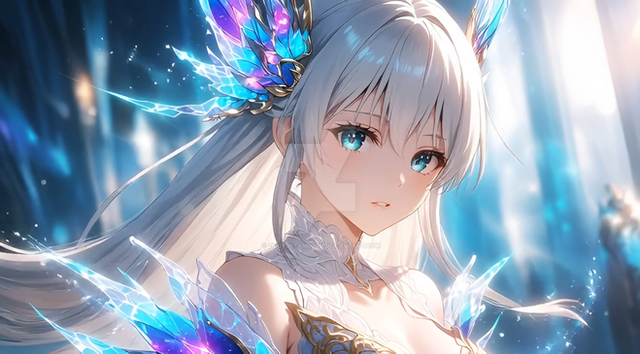 #ai #beautiful #blue #butterfly #dress #effects #eyes #girl #hair #ice #illustration #long #masterpiece #quality #white #wings #best