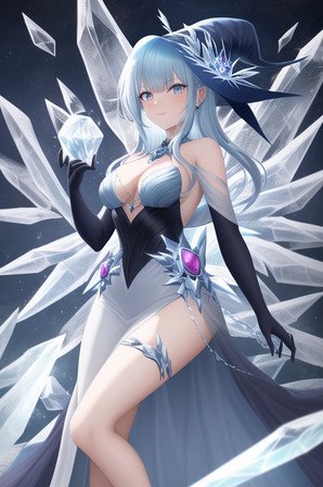 #ai #beam #beautiful #blue #diamond #effects #eyes #girl #hair #hat #ice #illustration #jewels #masterpiece #quality #splash #white #witch #best