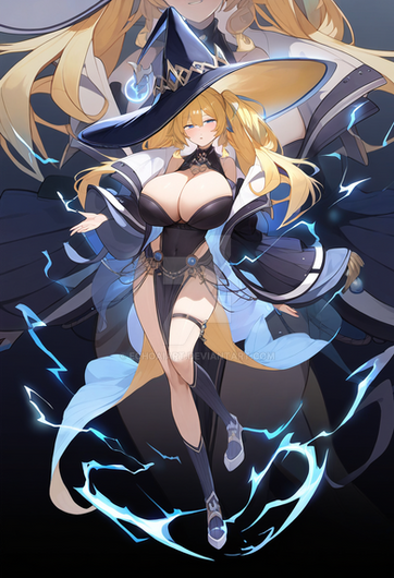 #ai #angry #beam #beautiful #blond #dress #effects #electric #eyes #girl #hair #hat #illustration #lightning #masterpiece #mouth #open #quality #witch #yellow #best