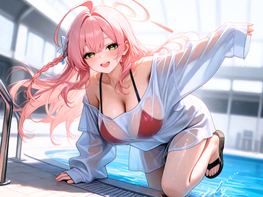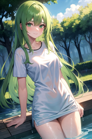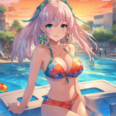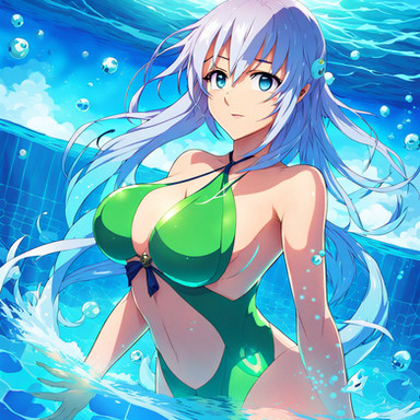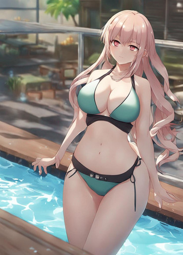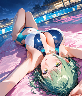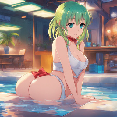 #digitalart #anime #animegirl #animefanart #fanart #characterdesign #digitalpainting #ai #bigbreasts #greenhair #kawaii #pool #redeyes #sexy #waifu