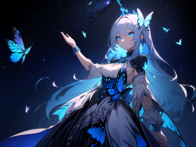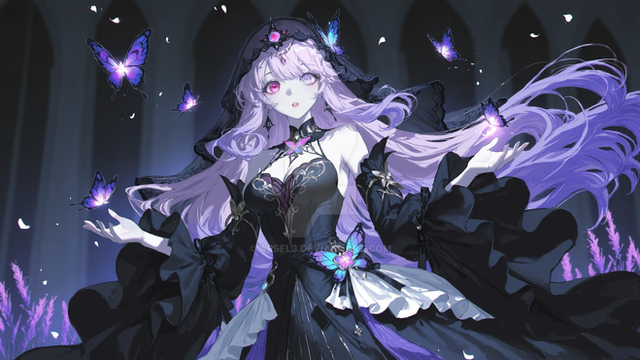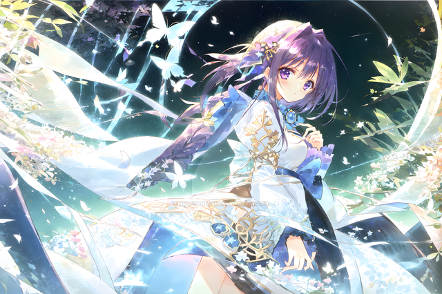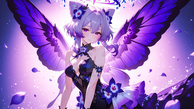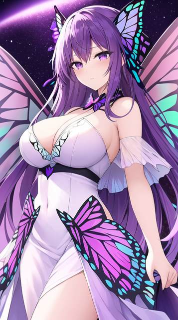 #ai #angry #beautiful #butterfly #dress #effects #eyes #girl #hair #illustration #long #masterpiece #purple #quality #white #wings #best