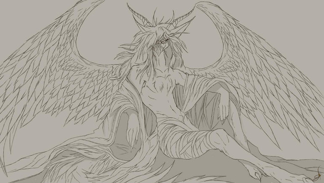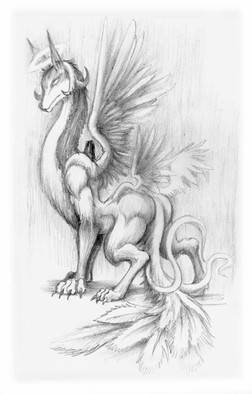 Now..I have this image in my head...and yeah, black and white doesn't bring forth the right image lol. This drawing definitely needs to be colored to get across the "dark fox" idea. The idea sort of spawned from an IRC conversation awhile back, but I never really drew it. Now I did. :3 But...I need to color it...seriously lol. Technically the pencil isn't even done, but I tired of shading the blasted wings and just decided it's done. So here it is, enjoyishishRelated content