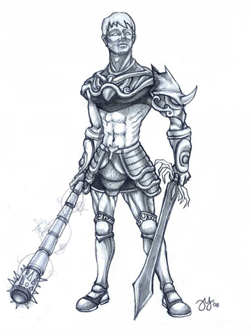 So..yeah, it's a dragon slayer? lol. I wasn't sure where to stick this in terms of classification...but dragons are mythical...so I was like...sure...dragon slayers must be mythical too...therefore...fantasy it is! And here it is...drawing him was fairly easy...shading him..that...resulted in many many hand cramps. It's been awhile since I had to shade that much...I blame his freaking armor lol. Well, hope everyone likes it. Ciao ciao.Related content