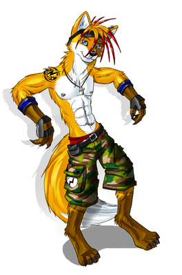 Alrighty...people wanted a reference sheet for Fox...so here it is..in all its glory. I drew it with the intent of digitally inking it and then either cel-shading or soft-shading it...once I got it into photoshop however...my wonderous PS personality kicked in...screw that! It says...and so I just colored solid colors over it and here it is. lol. Uh..hmm..yeah. That's about it. I think. Maybe. >.>;Yeah. For sho.I got lazy when it came to drawing more views too XD