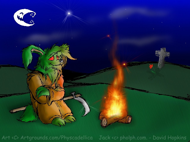 Your background doesn't suck. It's pretty good, especially with the burning house effect. Very nice I also like the fox's armor and the way his eyes are hidden under his hair. Great stuff.!