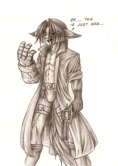 That drawing just pwns all. The darkness. The angst. The glint of armor!