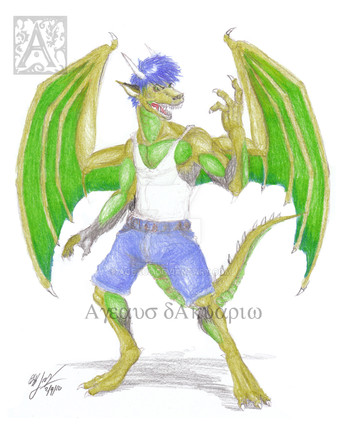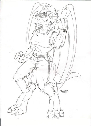 Soo this was originally an idea by where you switch the fur for scales..or scales for fur...depending on what your character was. As Fox has fur...I was to give him scales...but I transformed him entirely lol. Now he's like...a dragon. I sort of like the look.Related content