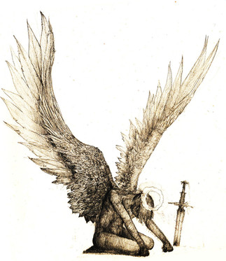 Ok...soo....the whole title "New Pain" was really because this was supposed to be the first time his wings unfurled. And yes...there was pain..bad pain lol. Granted until I photoshop the blood in...it's a little hard to tell. lol. Then I think I'll just leave the red/black/white...no other colors. Ya know...for emphasis.Ciao.