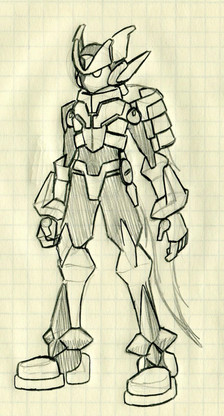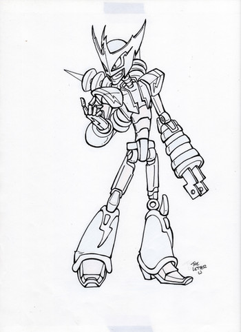I wasn't sure where to stick this guy actually lol. I stuck it in anime because the original sketch was inspired by Megaman. I decided to redraw him because the other sketch was....well ancient lol. Soo...I redid him in a better pose and...with more detail and what not. Besides, the other one was doodled in school...so it ended up on lined notebook paper XD Anyhoo....he was supposed to be like...one of those enemies that turn around in the end and become good...so he looks sort of evil...and blah blah. Figure he has a humanish face, but it's covered by a mask. Although looking at this guy now, he looks I meshed Megaman and Gundam together lol.Anyhoo, his name is Eon. Pronounced Ay-On. And that's all there is to it lol.