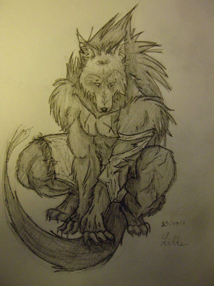 So...I drew a were wolf....just sort of sitting around...staring at you.....waiting...for you to look away so HE CAN EAT YOU. Well not really. ^.^;;Related content