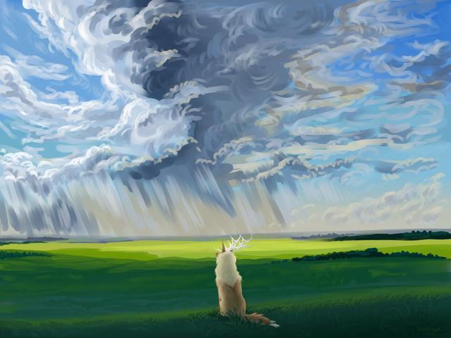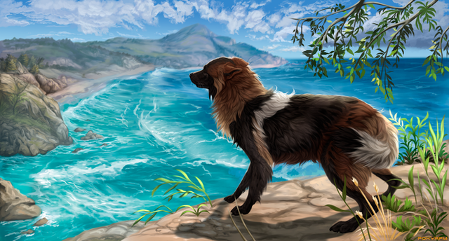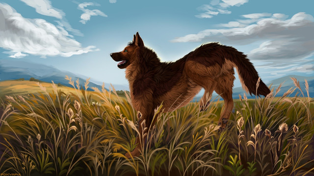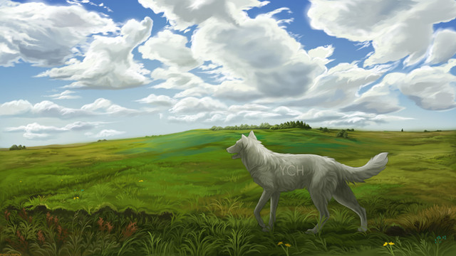 #canine #character #clouds #digital #dog #feral #field #greens #landscape #meadow #meadows #nature #scenery #similar #sky #wild #art