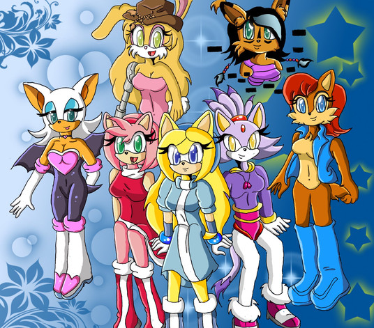 i really like how rouge is just sitting there sonic shadow amy blaze and also tails and silver and also tikal and knuckles looks really good as rouge