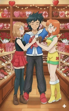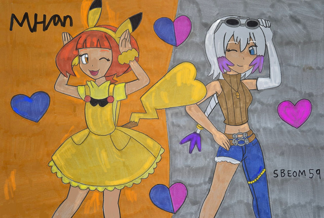 Thanks, glad you like it. Yeah, I don't think it would be too hard to guess who is who on the triangle. The heart gesture is more or less symbolic of them bonding over their shared love for the same boy. I have yet to see a story where they're portrayed this way (as in, with both of them as friends with each other, and having more or less equal chances with Ash, with neither having a clear advantage over the other).