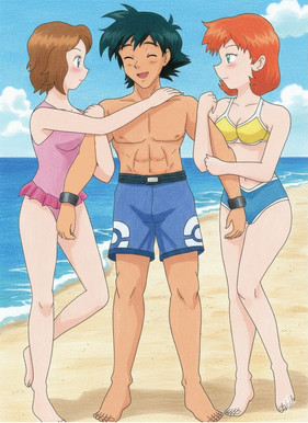 So well, that Pokémon story I have planned between Ash, Misty and Serena is still going, although I first decide to write a "prologue" detailing how Misty and Serena meet each other and become friends. That was originally going to be told in flashbacks, but after a past experience I decided to make those flashbacks a separate story instead. While the title of the main story has yet to be decided, the prologue's will be the same as of this pic (partially based on that of the Indigo League episode when Ash and Ritchie fight each other). Which is pretty much the general idea I have in mind for these two. I mean, just because they'd be rivals for the love of the same boy, it doesn't mean they can't be friends and get along, does it?