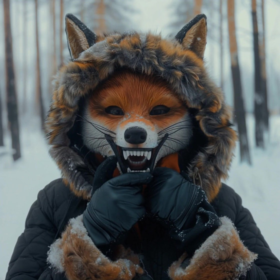 Coolarts223 - Laughing person in fox mask, in snowy forest [🤖]