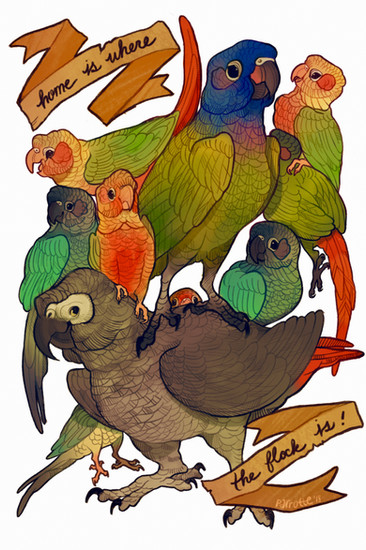 It's a stack of cockatoos! I'm owned by a Moluccan, I would absolute love to work with palm cockatoos some day, but I doubt that will become a reality. They are all such incredible birds.Prints available: foxloft.com/image/cockatoostacβ¦