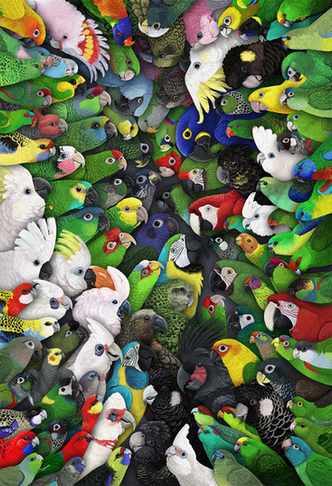Love the pic though, especially the rendering on the red-tailed black and palm cockatoo.