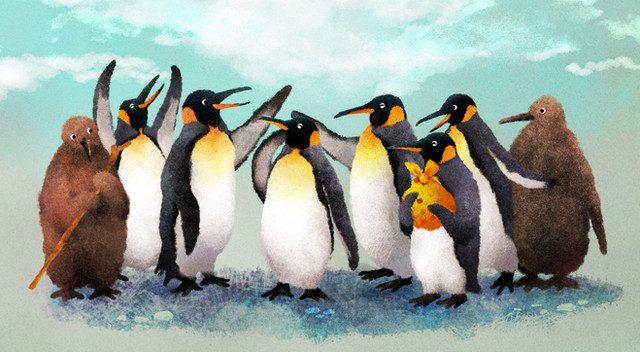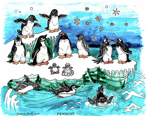 From top to bottom: Fairy, African, Royal (left), Rockhopper (right), Adelie, Chinstrap, Gentoo, Emperor (left), King (right).Prints are available! [link]