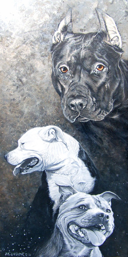 Pibbles!Featuring American Pit Bull Terriers, American Staffordshire Terriers, and Staffordshire Bull Terriers in a variety of colors; white, black, fawn, brindle, parti-color, blue, and red-nose red.