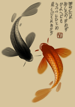 just thought I`d share some random trivia `koi` in Japanese can also mean `Love`, you`ve written `ai` ζγthere which is the same meaning but just as a coincidence the carp `coi` written as ι― when written with the kanji ζ which is also pronounced exactly the same means love.
