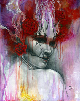 I thought about what it is to be struck by an inspirational muse... and how sometimes it bleeds an artist dry to unlock the emotion of creation. Not a bad thing, by any means.... just a very unique thing that can leave an artist physically and emotionally drained afterward. So I hope this piece conjures up a bit of that.