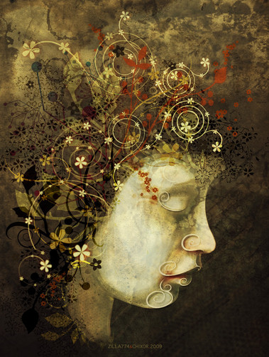 this reminds me of one of my favorite french cymbolist painters that works with similar shading, argh i think it was charles bauderire or soemthing liek that. sorry can trecally who it was exactly, but i love this the texture is to die for!