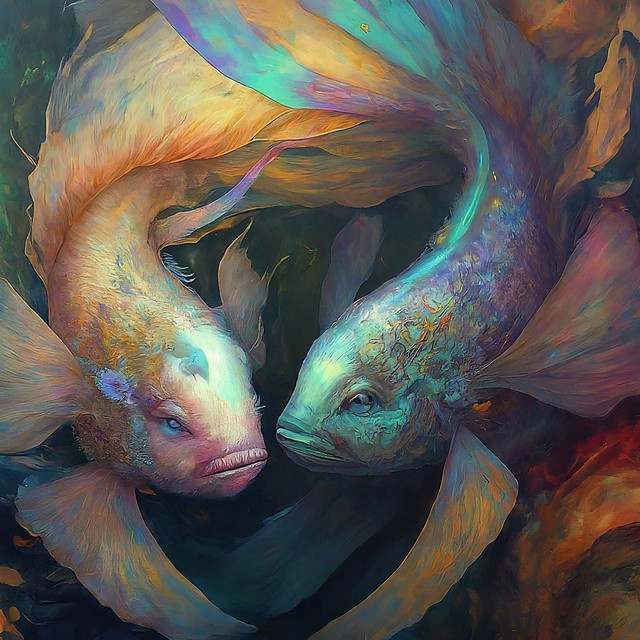 The colours are gorgeous. I love the split mid-screen, with the opposite colour used for the fish. So vibrant and such great details. This is a very beautiful piece.