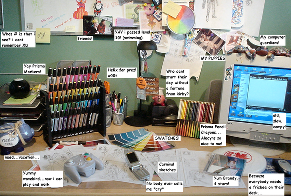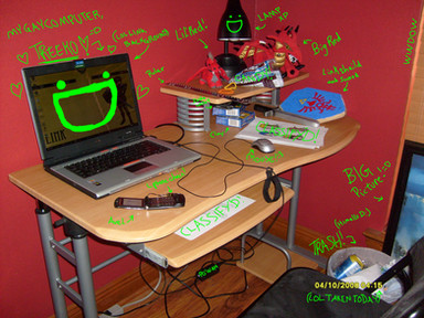 lol, yup my desk area. I brought the digital camera to mohawk a few days later. I still can't get over the number of camera shy people there are in this school. No, I'm not trying to steal your soul. lol