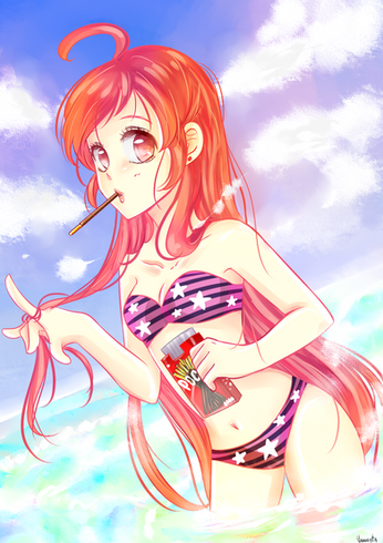 I tried to put together the whole thing in one day, so here's a speedy art of summer Rika***