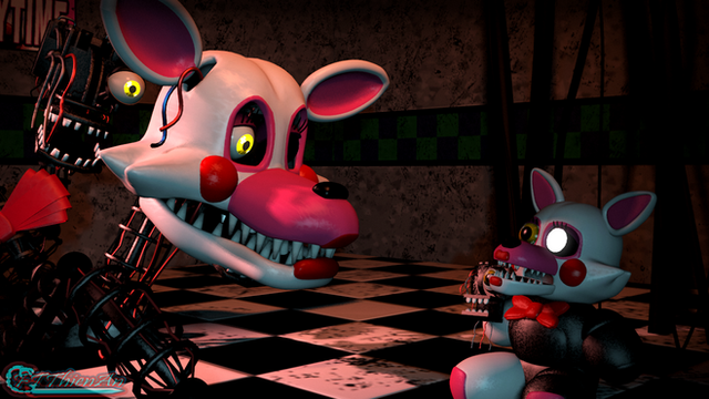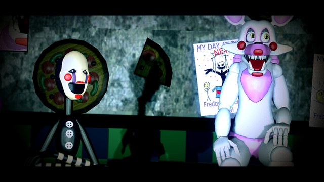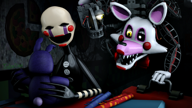 The Marionette helping Mangle learn how to walk. Happy 8th Anniversary to FNAF 2!Please give credit when using this.