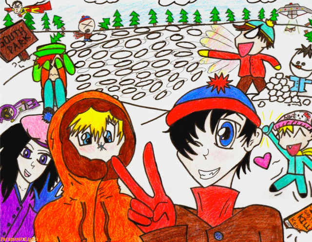 Wow! That is sooo cute!!! The snowWOMAN was even a good idea LOL! Good job on this, I like hoe you drew Kenny and the frame aswell