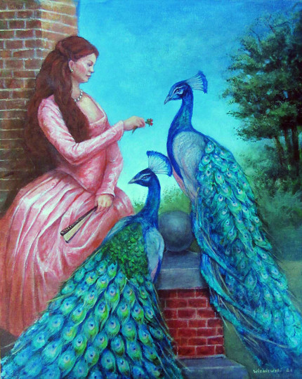 Wow a drawing!! I seriously thought it was a photo, but wondered if the peacock was real coz i can't imagine one as a pet. Awesome work!!