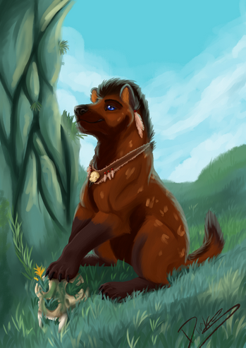A commission by of her hyena fursona, Kiah.The elephant graveyard isn't so obvious, but seemed to work well with the image.