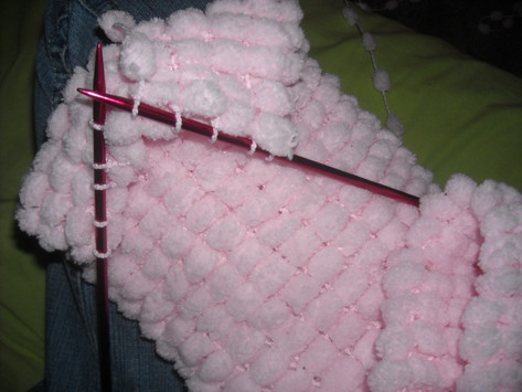 Not sure I like how the TLC Essentials yarn is working out. It frayed when I started, so I had to cut it. Then I accidentally went in between the plys instead of around them. But aside from that, it really is coming along nicely. I blame the corrected mistakes on Tomo cause he was pulling on the yarn to play with it.