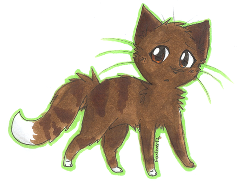 that's so cute!!! all of your drawings that i've seen are! I was wondering if you would draw my cat in the manga I'm making ; Starshimmer. She is a dark brown and maple tabby with seafoam eyes. YOU DONT HAVE TO! I just want to see what he would look like in your drawings